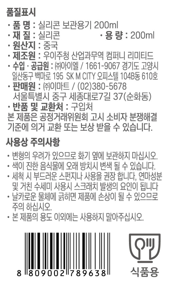 5K프라이스 실리콘 보관용기 200ml