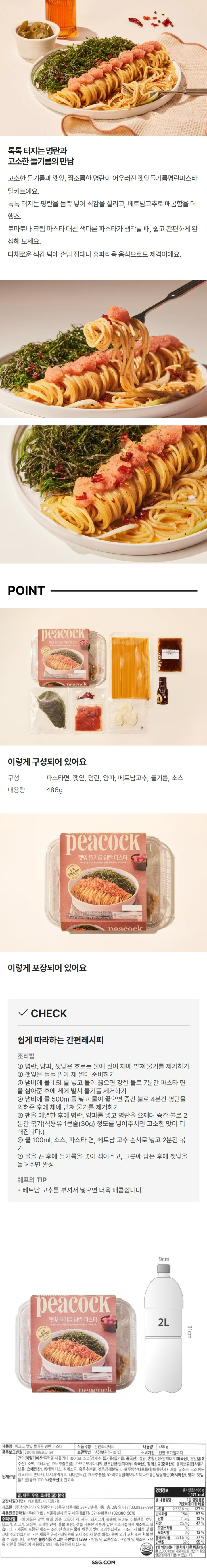 피코크 깻잎 들기름 명란 파스타 486g