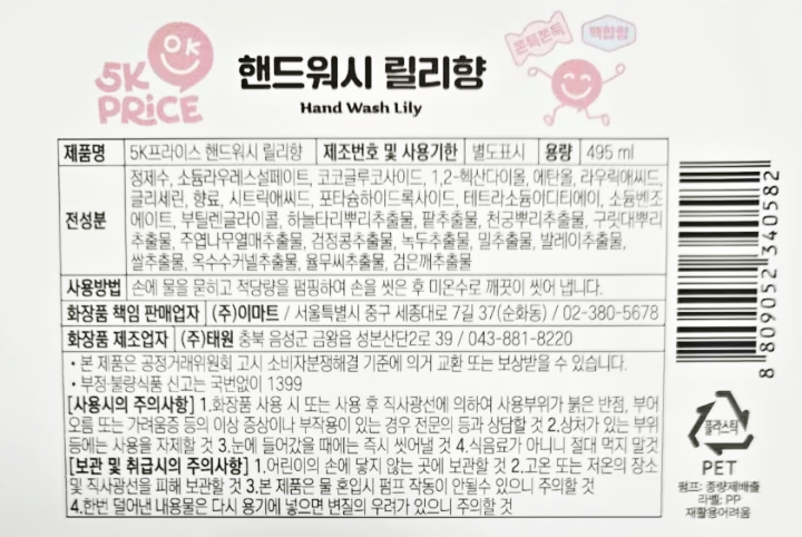 5K프라이스 핸드워시 릴리향 495ml