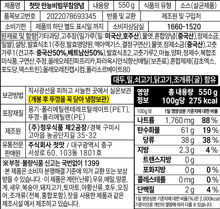 첫맛 만능 비빔&무침양념장 550g