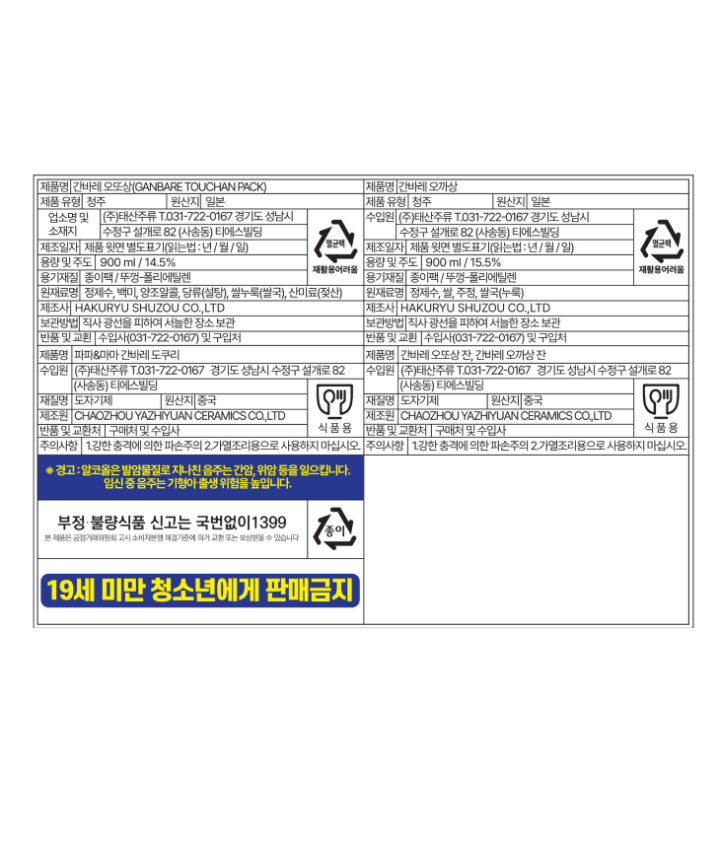 간바레 오또상 900ml + 오까상 900ml 도쿠