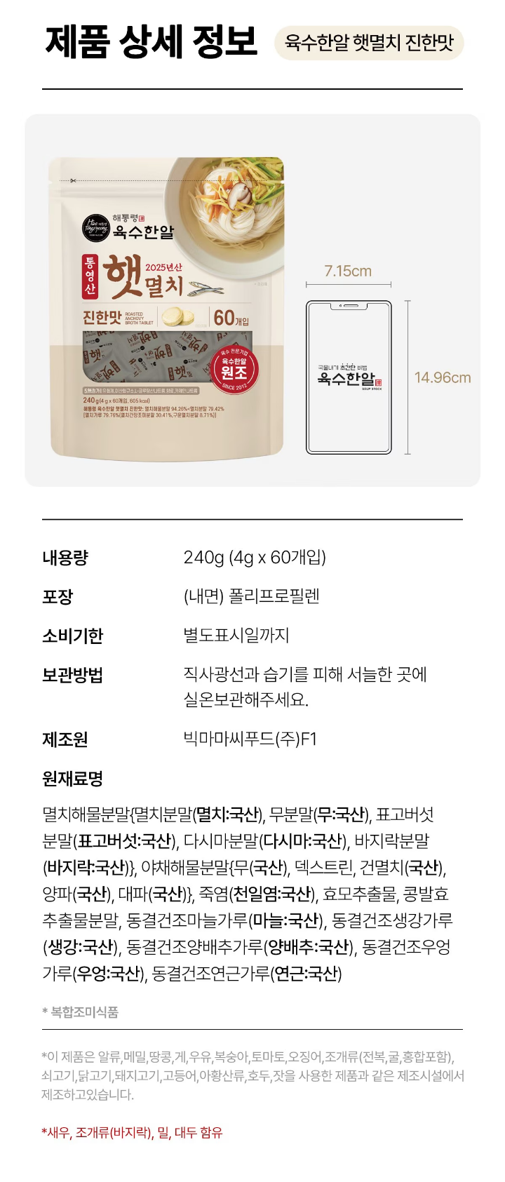| 원재료명 및 함량 | (농수산물의 원산지 표시에 관한 법률에 따른 원산지 표시 포함) |