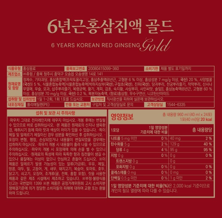휴럼 6년근 고려홍삼진액 골드(40ml*24포)