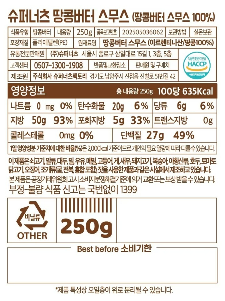 슈퍼너츠 땅콩버터 스무스 파우치 250g