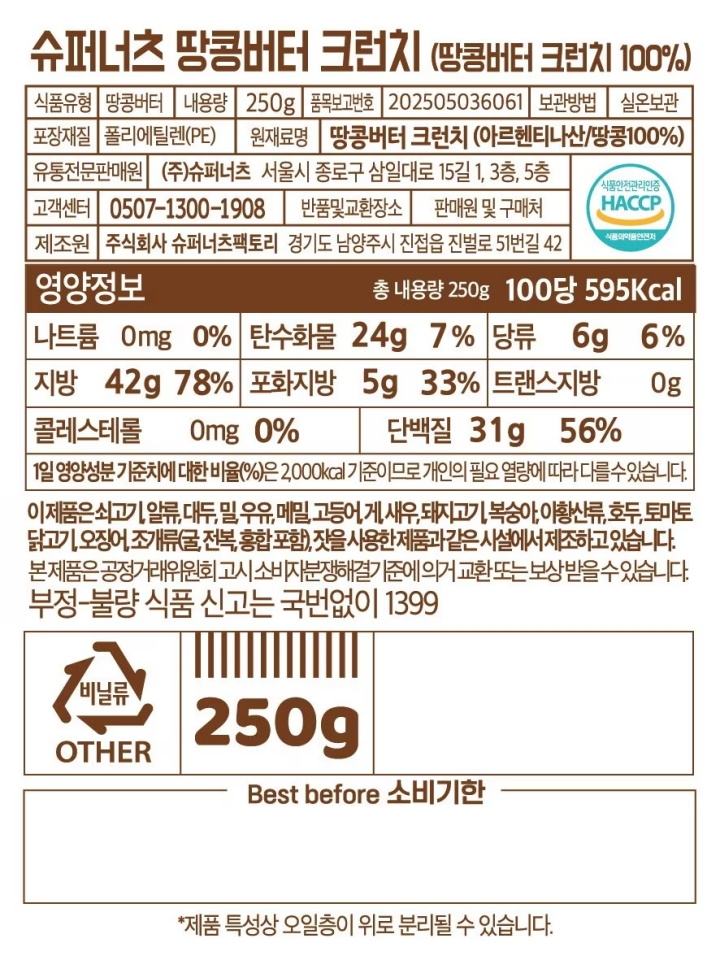 슈퍼너츠 땅콩버터 크런치 파우치 250g