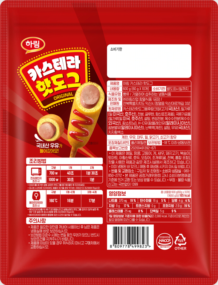 | 원재료명 및 함량 | (농수산물의 원산지 표시에 관한 법률에 따른 원산지 표시 포함) |