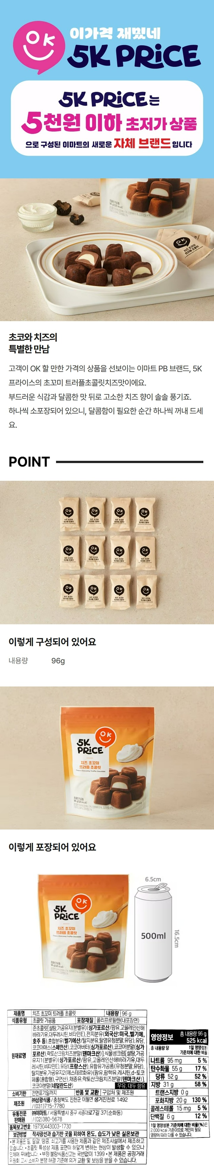 5K 초꼬미 트러플 초콜릿 치즈맛 96g