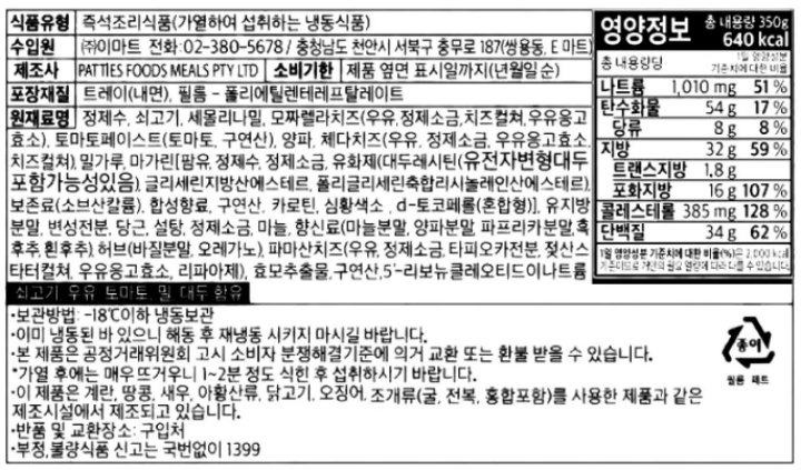 | 원재료명 및 함량 | (농수산물의 원산지 표시에 관한 법률에 따른 원산지 표시 포함) |